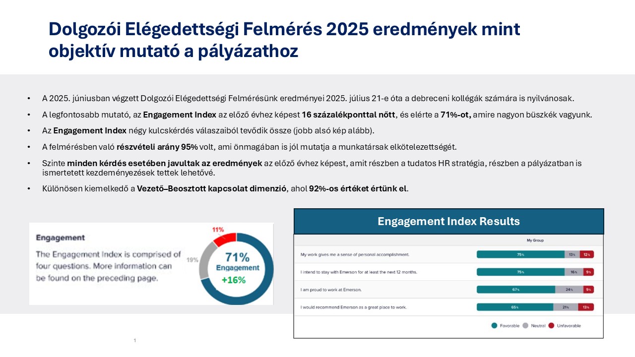 A program már most is hozzájárult ahhoz, hogy az Emerson debreceni egysége megerősítse pozícióját a technológiai szektorban, mint olyan munkahely, ahol az értékek nemcsak kommunikált, hanem megélt elemei a mindennapoknak.